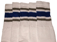 White tube socks with Gold/Baby Pink/Baby Blue stripes
