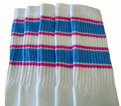 Knee high white tube socks with Hot Pink/Baby Blue stripes