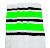 Knee high white tube socks with Bubblegum Pink/Black stripes