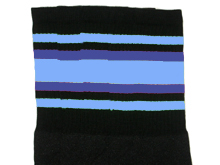 Knee high white tube socks with Baby Blue/Navy Blue stripes