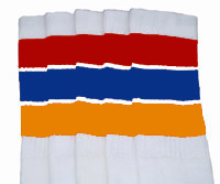 Knee high white tube socks with Dark Brown/Baby Blue stripes