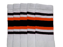 Knee high white tube socks with Hot Pink/Dark Brown stripes
