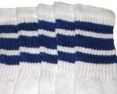 Over the knee white tube socks with Royal Blue stripes