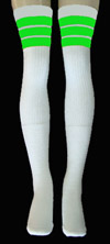 Black/Green/Gold Striped Thigh High White Tube Socks