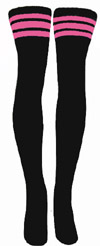 Black & Bubblegum Pink Striped Thigh High White Tube Socks