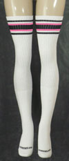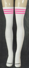 Bubble Gum Pink & Hot Pink Striped Thigh High White Tube Socks